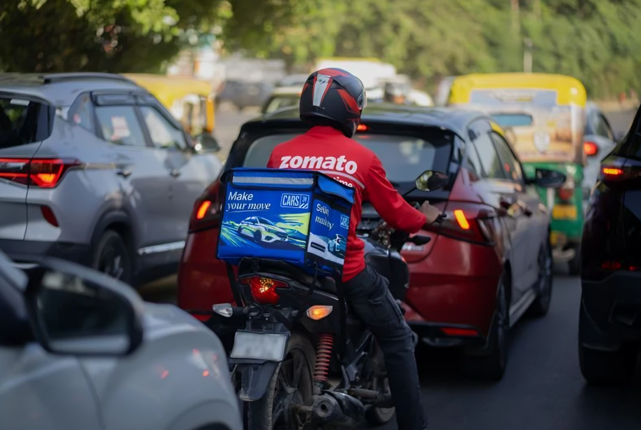 Zomato has kicked off an innovative campaign in collaboration with CARS24 that is set to redefine how brands advertise on the move. The pilot program, currently live across Bengaluru, transforms Zomato’s familiar red delivery bags into branded ad spaces, creating a fleet of mobile billboards that reach every corner of the city.